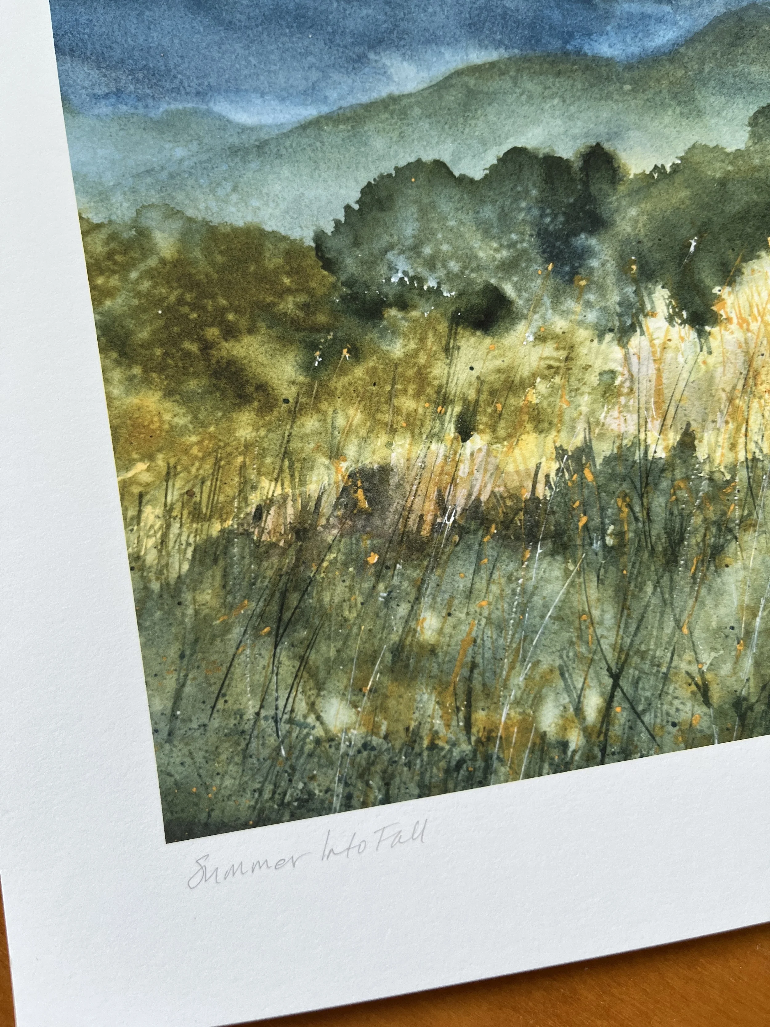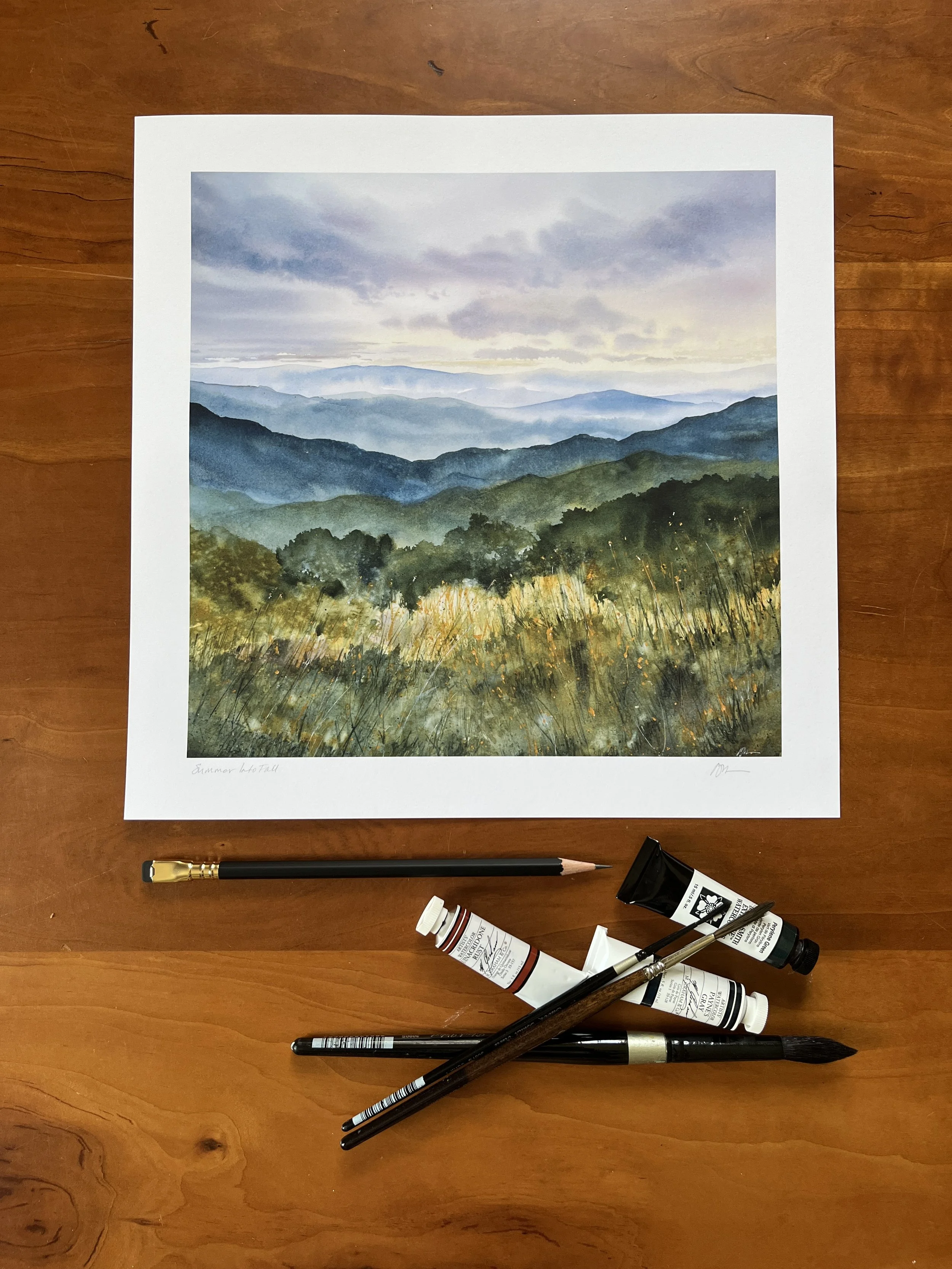 Bring the peace and beauty of the mountains into your home! Printed on 100% cotton rag, acid free paper with archival pigments, these prints are gorgeous—amazing color and created to last a very long time! Categories: Select a Category Prints Prints Prints | Summer into Fall Limited Edition Print 20" x 20" $200.00 NEW! Early Spring $40.00 NEW! Variation on a Theme $40.00 NEW! Summer into Fall $40.00 NEW! In a Blink $40.00 NEW! Quiet Mind $40.00 NEW! Light Stream $40.00 NEW! I Can See for Miles $40.00 It's going to be a good day! from $25.00 NEW! Choose the Light from $25.00 Home from $25.00 Late Summer Waves from $25.00 Mountain Glow from $25.00 And the Days are Getting Shorter... from $25.00 Mama Bear $25.00 Shop Original Art Original Artwork and Print FAQs